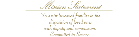 Our goal is to support you through every step of your arrangements and to pay tribute to the special memory of your loved one. To assist bereaved families in the disposition of loved ones with dignity and compassion.